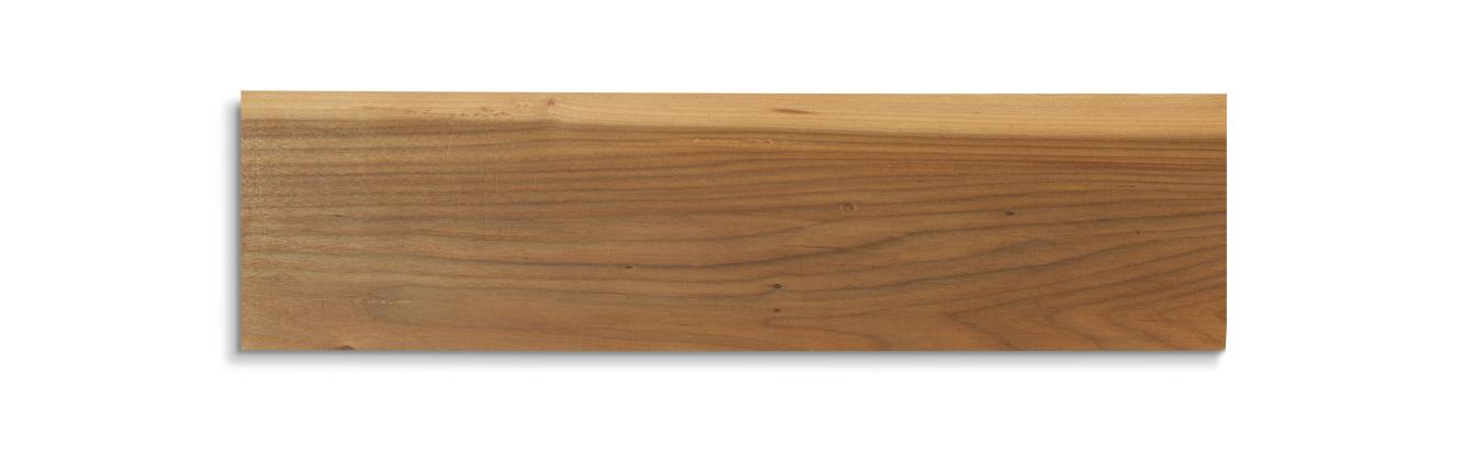 The close grain red elm may be straight or severely interlocked, with a coarse texture. The narrow sap is greyish white to light brown and the heartwood is light to dark brown in colour. Bird pecks are found in elm and are regarded as a natural characteristic and not considered a defect under NHLA Grading Rules.