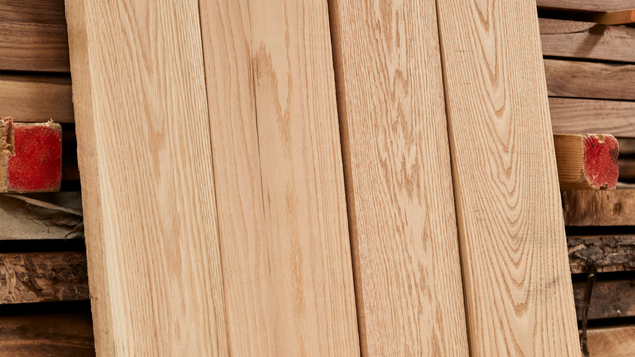 Reaching a height of 21m, with a trunk diameter of 1m, red oak is the most abundant species in America’s hardwood forests. Named for the colour of its leaves in the fall, this classic oak wood has a light brown sapwood, and a heartwood characterised by attractive warm reddish-pink tones. Red oak is strong, straight grained, coarse-textured and distinctive. Its porosity makes it a premium wood for bending and staining.