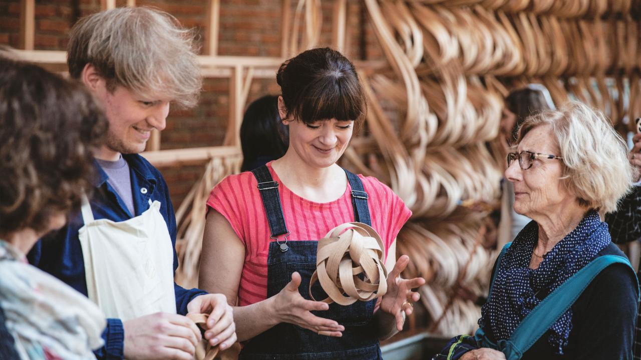 Pushing the limits of American soft maple, American cherry and American red oak, artist Laura Ellen Bacon and furniture maker Sebastian Cox created this unique handmade installation as part of The Invisible Store of Happiness project.