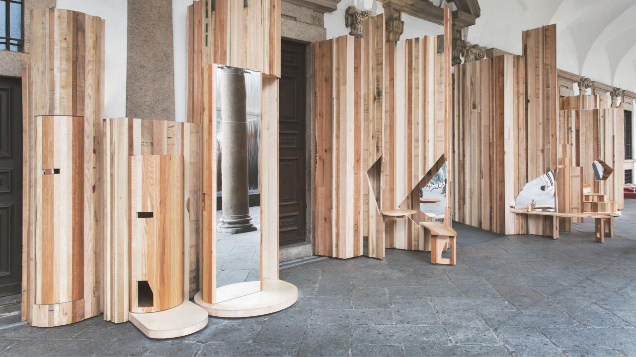 An interactive installation, designed by Benedetta Tagliabue - EMBT, crafted by furniture makers Benchmark and initiated by AHEC, that seeks to question the validity of the relationship between trends and wood consumption.