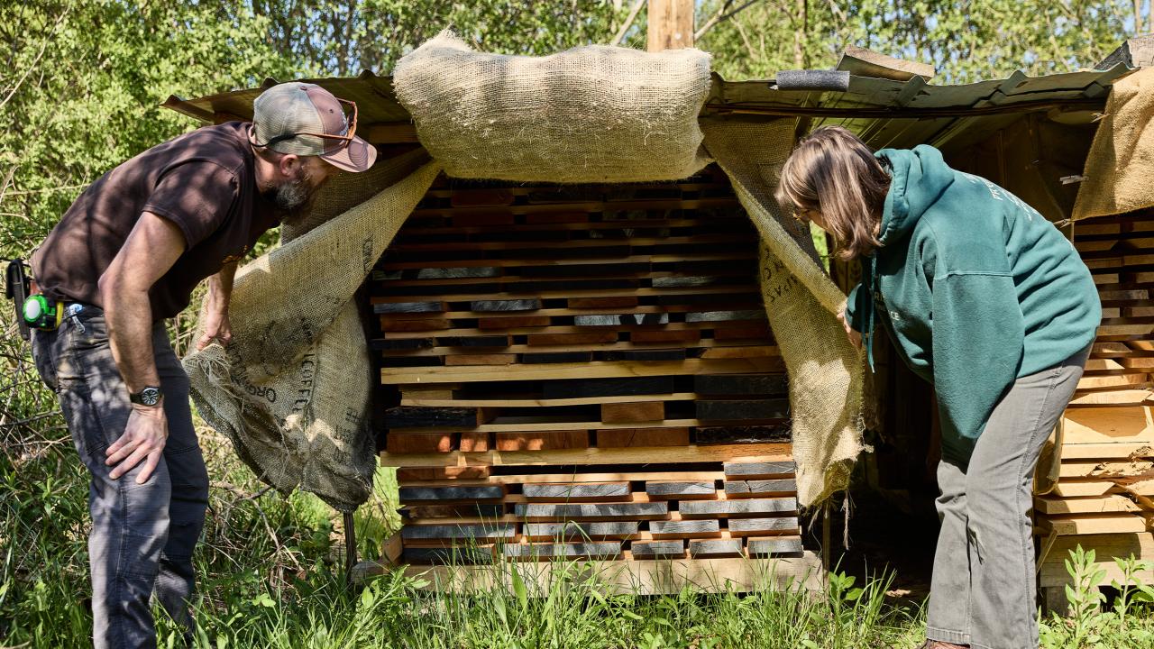 Image: Brian Brace and apprentice Anna Sullivan at his site in Black Mountain, North Carolina. Photography by Petr Krejci.
