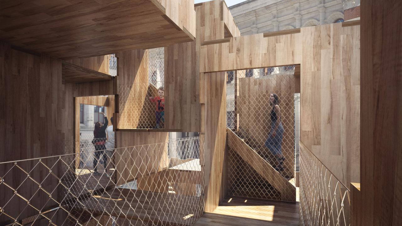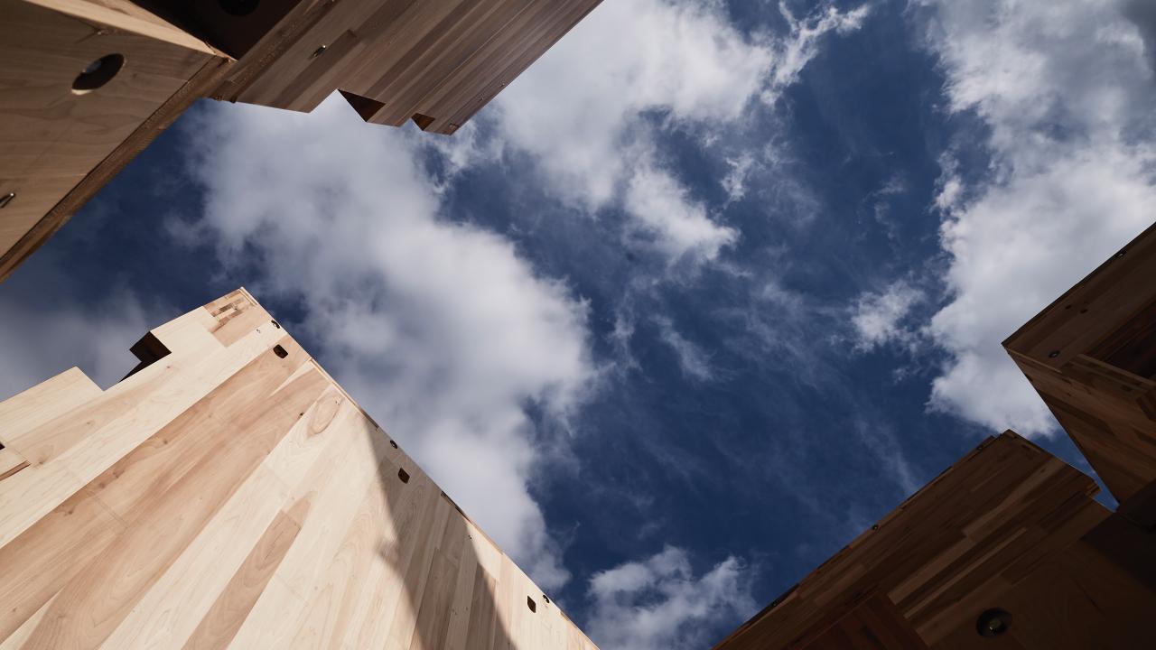 Waugh Thistleton Architects telah memelopori penggunaan kayu yang inovatif dalam konstruksi selama beberapa dekade. MultiPly berupaya mengeksplorasi cara baru dan lebih berkelanjutan untuk membangun properti, menyatukan bahan karbon-negatif yang tersedia – American tulipwood – dengan rancangan modular.
