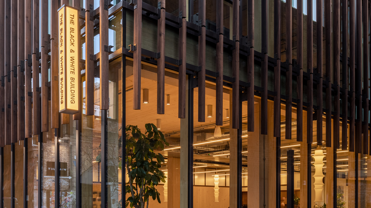 At the heart of Shoreditch lies the tallest engineered timber office scheme in London, The Black & White Building. Standing amongst swathes of concrete structures, the wood building acts as a powerful statement with its efficient components and highly sustainable materials. The project pushes the boundaries of timber architecture both internally and externally while providing high-quality spaces for its users. Offering flexible and shared workspaces the building is a truly ground-breaking mass timber structure.