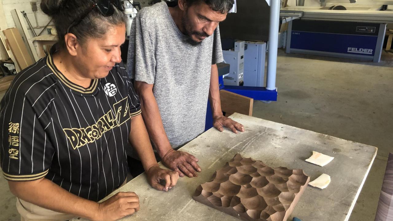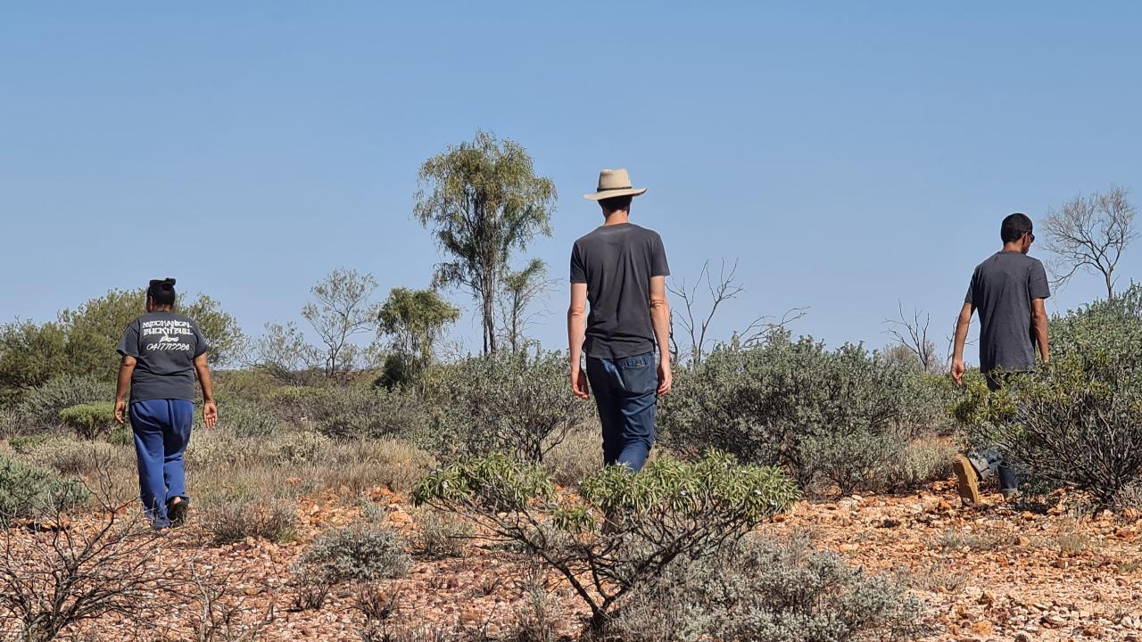 Engaging processes of Deep Listening to each other and Country, the collection is in part a response to climate change experienced by the designers’ communities in remote South Australia and a poignant reminder of the need for environmental responsibility and action. The rapidly warming, drying landscape threatens the lives of community members and the ecosystem and, in turn, connection to Country and culture. Employing motifs of drying, cracked earth and protection, the collection is a powerful visual representation of the critical thresholds in the Earth’s system and the consequences of pushing against those boundaries. Kurunpa Kunpu invites reflection on the distribution of environmental burdens and benefits and the importance of reengaging in Relationality between community, culture and Country.