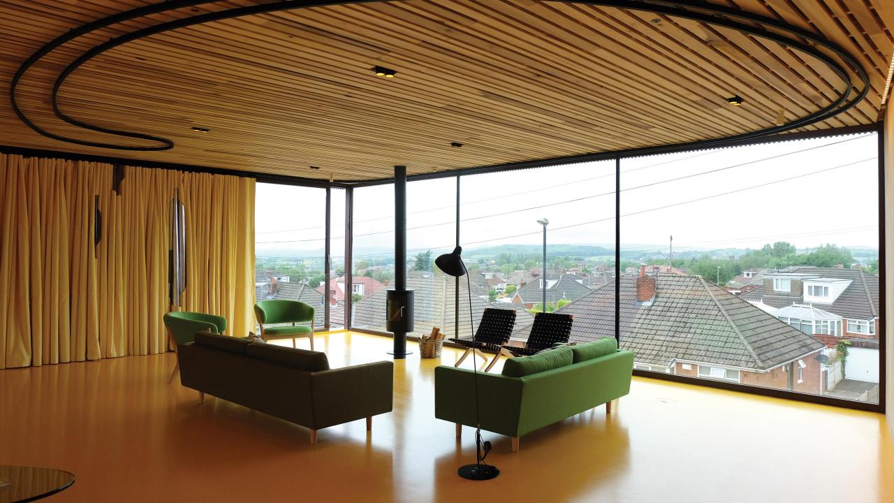 The main kitchen table around which visitors are encouraged to sit, is a design by Barnby Day that was commissioned by Alex de Rijke and AHEC for The Wish List for London Design Festival 2014. Built by Benchmark furniture from recycled tulipwood CLT with the base from off-cuts of CLT from the windows and doors from Maggie's Oldham.