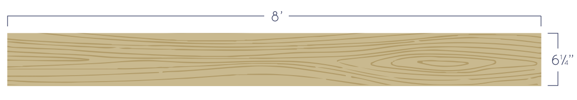 La tabla de abajo tiene 2" de grueso, 61/4" de ancho y 8' de largo.