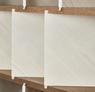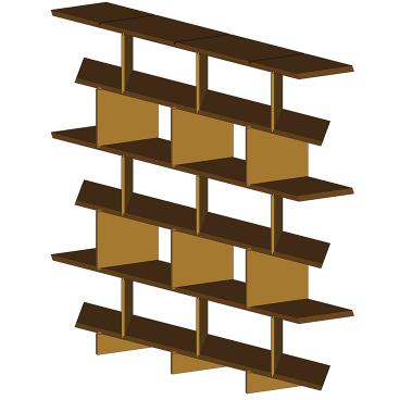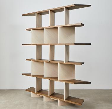 ชั้นวางแบบแยกอิสระสำหรับการจัดเก็บ LPs ออกแบบโดย Martino Gamper สำหรับ Tamara Rojo ผู้กำกับศิลป์ของบัลเลต์แห่งอังกฤษ ส่วนประกอบแนวนอนที่เข้มขึ้นสร้างจากไม้โอ๊กแดงรมควันในขณะที่แนวตั้งปกคลุมด้วยแผ่นไม้อัดแนวทแยงที่เบากว่าเพื่อสร้างความตรงข้ามและเน้นการออกแบบเฉียง