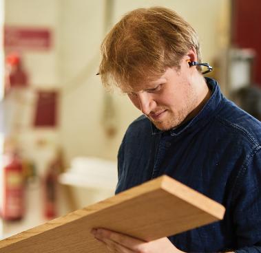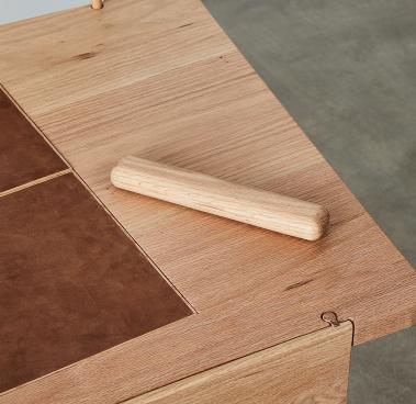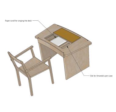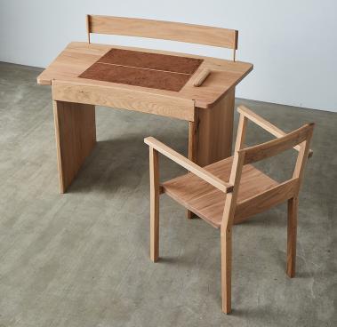 สถานที่เขียนรวมเก้าอี้ โต๊ะและที่จับปากกา เข้าไว้ด้วยกัน ทุกอย่างทำด้วยไม้โอ๊กแดง ออกแบบโดย Sebastian Cox สำหรับ Amanda Nevill, CEO ของสถาบันภาพยนตร์อังกฤษ มุมโค้งของโต๊ะอ้างอิงเส้นมุมมองของชั้นลอยที่สถาบันภาพยนตร์อังกฤษ ที่ซึ่งชิ้นงานจะติดตั้ง โต๊ะมีแผงเลื่อนที่เผยให้เห็นที่จับปากกาและม้วนกระดาษสำหรับนักเขียนลงนาม