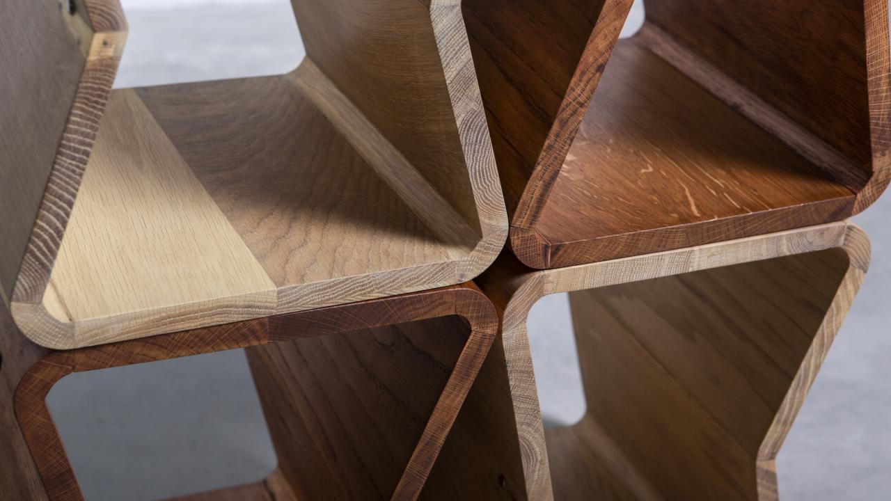 ‘Lagom’ แปลว่า 'ความพอดี' ในภาษาสวีเดน ชั้นวางนี้สะท้อนถึงเส้นมุมของหนังสือที่เปิดอยู่ อีกทั้งออกแบบให้สามารถปรับได้ตามความต้องการใช้งานและพื้นที่ ชิ้นงานเล็ก เรียบง่าย แต่ใช้งานได้หลากหลายขั้นสุด การออกแบบแสดงให้เห็นถึงลักษณะพิเศษของลายไม้ในส่วนท้ายของต้นโอ๊ก และไซเล็มซึ่งทำให้ย้อมสีไม้ได้ง่าย